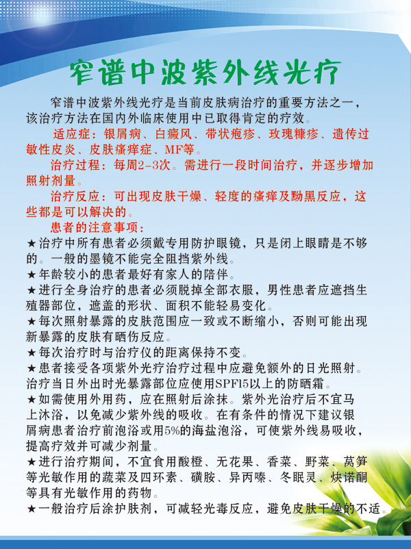 窄譜中(zhong)波(bo)紫外線(xiàn)光療