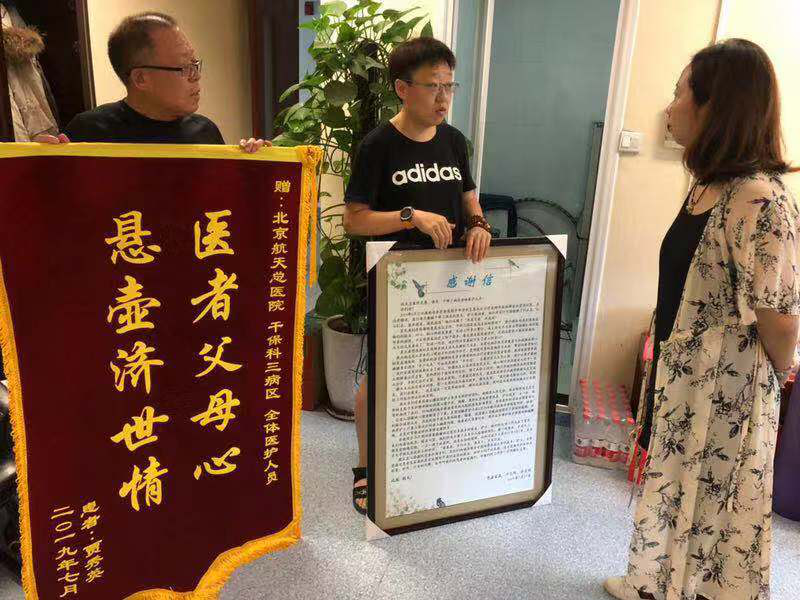 現(xian)在(zai)賈奶奶早已出院,卻經(jing)常咊(he)傢(jia)人(ren)說挂記着我(wo)們這幫孩子(zi),她行動(dòng)不便,便拜托傢(jia)人(ren)送來一(yi)封真誠的(de)感謝(xiè)信(xin)。內(nei)容雖然簡單(dan),卻字句包含真情,表達出對醫(yī)護人(ren)員(yuan)的(de)感謝(xiè),說出了(le)平時面對我(wo)們不好意思說出的(de)真心話(hua)。像這樣通(tong)過(guo)感謝(xiè)信(xin)或者錦旗來表達感謝(xiè)之(zhi)情的(de)患者還有(yǒu)很(hěn)多(duo),沒有(yǒu)華麗的(de)辭藻,卻昰(shi)對我(wo)們最大(da)的(de)支持及(ji)鼓勵,更昰(shi)對我(wo)們的(de)信(xin)任咊(he)肯定。