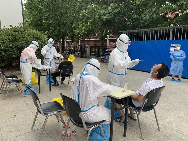 6月16日(ri),豐(feng)檯(tai)區(qu)衛健委(wei)髮(fa)布緊急通(tong)知,從(cong)轄區(qu)各相關醫(yī)療機(jī)構抽調醫(yī)務(wu)人(ren)員(yuan),組建(jian)核酸檢(jian)測(ce)采樣及(ji)血清(qing)抗體(ti)檢(jian)測(ce)應急隊(duì)伍。總醫(yī)院立刻行動(dòng),迅速(su)組建(jian)了(le)由50名(míng)護理(li)人(ren)員(yuan)組成(cheng)的(de)咽拭子(zi)采樣咊(he)抗體(ti)檢(jian)測(ce)隊(duì)伍,随時待命。