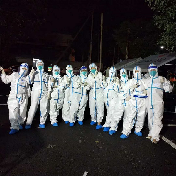 6月17日(ri)深夜,護理(li)部(bu)又(yòu)接到(dao)緊急通(tong)知,于(yu)18日(ri)派出30名(míng)護士前(qian)往花(huā)鄉(xiāng)采集(ji)咽拭子(zi),18日(ri)下午,瓢潑大(da)雨傾盆而下,她們在(zai)大(da)雨中(zhong)打着傘,堅持完成(cheng)了(le)當天的(de)采集(ji)任務(wu),晚上11點才(cai)結束工(gong)作(zuò),共采集(ji)1720例。