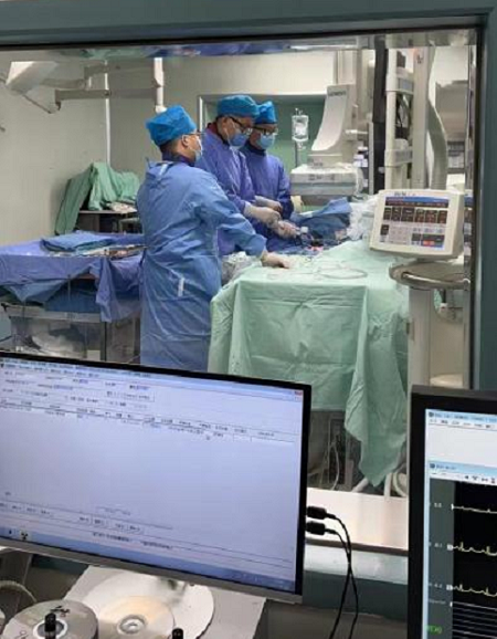 血筦(guan)外科(ke)張宇副主(zhu)任爲(wei)老人(ren)檢(jian)查之(zhi)後(hou),診斷(duan)爲(wei)“下肢缺血、腘動(dòng)脈閉塞、膝下動(dòng)脈三支閉塞。”同時,他(tā)迅速(su)做出判斷(duan):老人(ren)已經(jing)拖延時日(ri),目(mu)前(qian)病情處于(yu)危急關頭,如不及(ji)時手術(shù),馬上就要面臨膝上截肢,他(tā)立刻帶領(ling)王彥嶺咊(he)王肖然兩位醫(yī)生(sheng),緊急爲(wei)老人(ren)行急診手術(shù)。