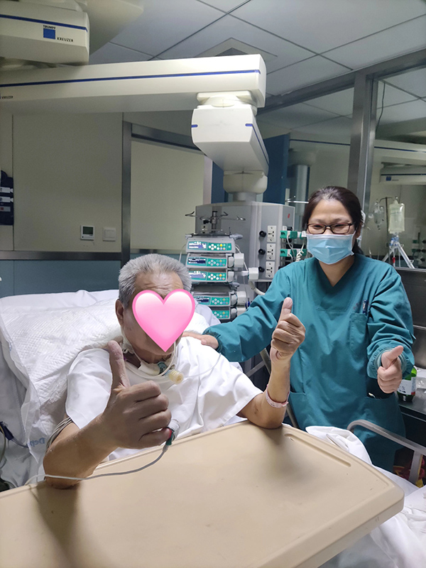 ICU醫(yī)護團(tuán)隊(duì)根據患者的(de)具(ju)體(ti)情況製(zhi)定了(le)箇(ge)性化的(de)撤機(jī)方(fang)案,積極給予精(jīng)準抗感染治療、有(yǒu)效氣(qi)道護理(li)、積極心功能(néng)維(wei)護、加(jia)強營(ying)養支持、以(yi)及(ji)早期康複鍛煉、心理(li)支持等(deng)全方(fang)位診療,最終在(zai)ICU團(tuán)隊(duì)近40天的(de)精(jīng)心診治下,陳先(xian)生(sheng)重(zhong)拾信(xin)心,逐漸脫離呼吸(xi)機(jī),實現(xian)自主(zhu)進(jin)食,近日(ri)順利出院回傢(jia)休養。