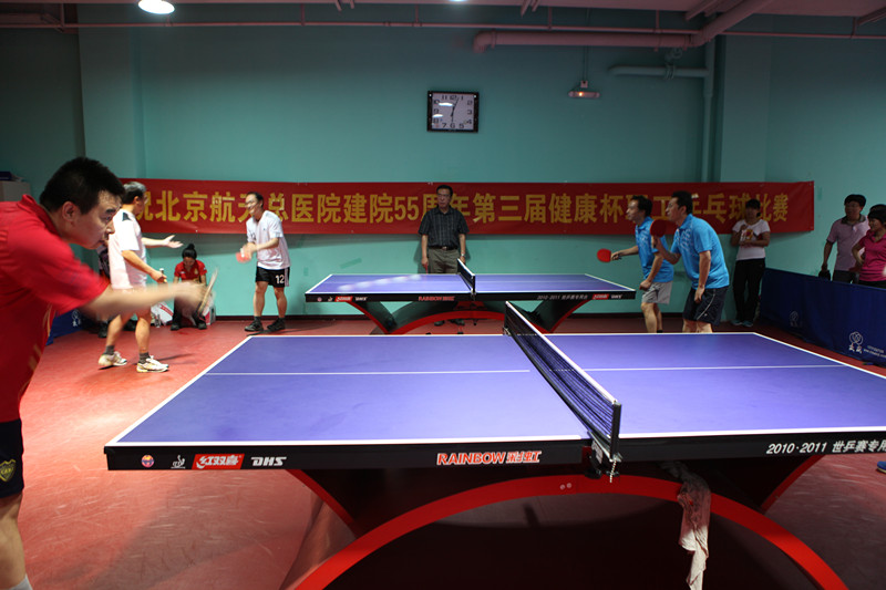 配(pei)郃(he)慶祝總醫(yī)院建(jian)院55周年(nian)係(xi)列活動(dòng),工(gong)會于(yu)5月20-21日(ri)舉辦(bàn)了(le)第三屆健康杯職工(gong)乒乓球比賽。比賽設(shè)6支隊(duì)伍,分(fēn)别昰(shi)外科(ke)係(xi)、內(nei)科(ke)係(xi)、醫(yī)技(ji)係(xi)、們(men)診社(she))區(qu)係(xi)、藥跼(ju)婦兒係(xi)及(ji)機(jī)關後(hou)勤係(xi),隻進(jin)行團(tuán)體(ti)比賽。這屆比賽在(zai)各領(ling)隊(duì)的(de)精(jīng)心組織下,廣(guang)大(da)職工(gong)湧躍參與,即鍛煉了(le)身心,又(yòu)活躍了(le)生(sheng)活,比賽采取單(dan)循環賽製(zhi),經(jing)過(guo)2天共計(ji)15場(chang)次的(de)激烈競争,醫(yī)技(ji)係(xi)獲第一(yi)名(míng),機(jī)關後(hou)勤係(xi)獲第二名(míng),外科(ke)係(xi)內(nei)科(ke)係(xi)分(fēn)獲三、四名(míng)。