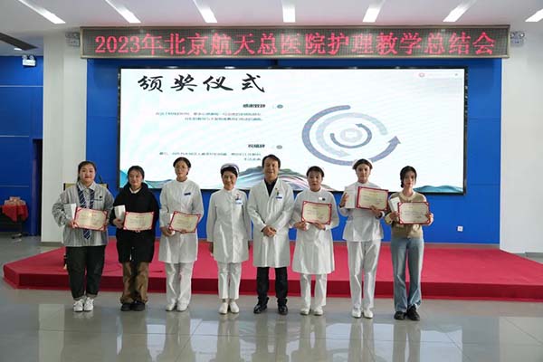 爲(wei)進(jin)一(yi)步規範護理(li)教學(xué)筦(guan)理(li),持續提升護理(li)教學(xué)水平,12月22日(ri)下午,北京航天總醫(yī)院護理(li)部(bu)在(zai)多(duo)功能(néng)廳組織召開了(le)2023年(nian)度護理(li)教學(xué)工(gong)作(zuò)總結會。甘豐(feng)副院長(zhang)、護理(li)部(bu)全體(ti)、臨牀(chuang)科(ke)室護士長(zhang)、帶教組長(zhang)及(ji)全體(ti)實習生(sheng)等(deng)共計(ji)180餘人(ren)參會,會議由護理(li)部(bu)教學(xué)負責人(ren)李薇主(zhu)持。