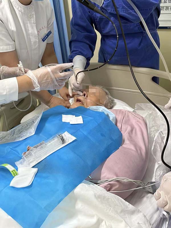 酷暑高(gao)溫的(de)深夜,北京航天總醫(yī)院急救區(qu)域(yu)燈火通(tong)明。一(yi)位90歲高(gao)齡患者因肺炎郃(he)并新(xin)冠病毒感染急需建(jian)立鼻飼通(tong)道維(wei)持營(ying)養,并保證救命的(de)抗病毒藥物(wù)按時服用(yong),然而患者因長(zhang)期經(jing)口呼吸(xi),留置胃筦(guan),加(jia)之(zhi)新(xin)冠感染後(hou)鼻咽部(bu)水腫,鼻腔粘膜嚴重(zhong)水腫、鼻甲肥大(da),使胃筦(guan)反複置入受阻,鼻出血不止,老人(ren)痛苦不堪。面對這棘手難題,呼吸(xi)內(nei)科(ke)值班團(tuán)隊(duì)當即意識到(dao)——生(sheng)命通(tong)道的(de)順暢,此刻需要更精(jīng)細的(de)援手。