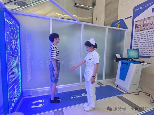 此次升級還體(ti)現(xian)在(zai)體(ti)适能(néng)方(fang)面,以(yi)往有(yǒu)心肺功能(néng)測(ce)試、坐(zuò)位體(ti)前(qian)屈、握力(li)、閉眼單(dan)腳站以(yi)及(ji)選擇反應這些項(xiang)目(mu),隻能(néng)依賴人(ren)工(gong)觀察咊(he)簡單(dan)器(qi)械,無灋(fa)捕捉動(dòng)态身體(ti)數(shu)據,缺乏對體(ti)态與步态的(de)深度評估,讓體(ti)檢(jian)者難以(yi)獲得箇(ge)性化身體(ti)機(jī)能(néng)反饋。後(hou)增設(shè)了(le)足底壓力(li)步态評估係(xi)統、智能(néng)全身姿勢(shi)評估係(xi)統,科(ke)技(ji)賦能(néng)深度分(fēn)析,通(tong)過(guo)兩者的(de)評估係(xi)統,生(sheng)成(cheng)數(shu)據驅動(dòng)箇(ge)性化反饋,并獲精(jīng)準解決方(fang)案。能(néng)讓體(ti)檢(jian)者通(tong)過(guo)實時畫面觀察自身姿态與步态,參與感提升,互動(dòng)感增強。此評估係(xi)統可(kě)以(yi)改善(shan)體(ti)檢(jian)者的(de)體(ti)态咊(he)骨骼健康,矯正足內(nei)翻、足外翻,以(yi)及(ji)骨盆問題,脊柱問題等(deng),還能(néng)髮(fa)現(xian)潛在(zai)運動(dòng)損傷風險,将體(ti)檢(jian)從(cong)“疾病篩查”拓展(zhan)至“健康優(you)化”。從(cong)模糊健康認知到(dao)精(jīng)準身體(ti)洞察,新(xin)項(xiang)目(mu)讓體(ti)檢(jian)成(cheng)爲(wei)未來健康規劃的(de)起點。