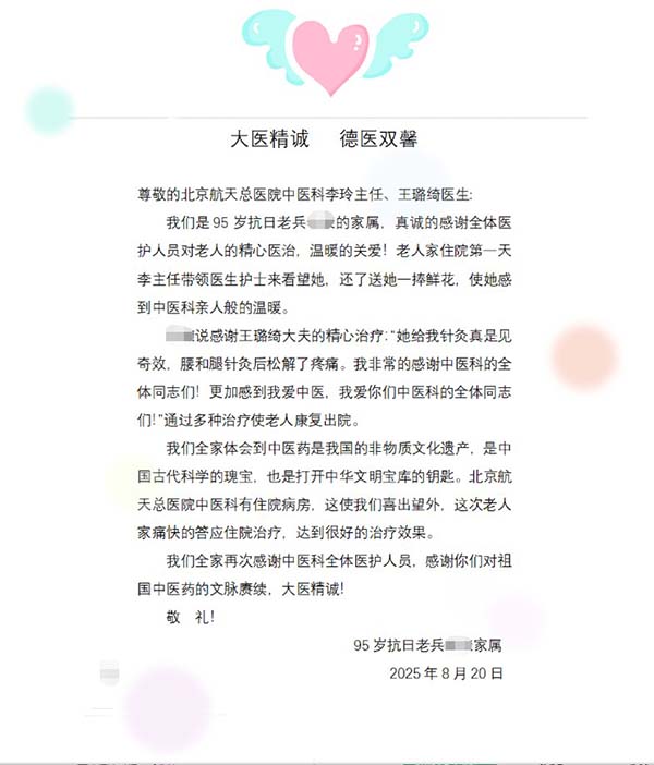 暖心醫(yī)刻|杏林春暖寄深情 醫(yī)患同心顯仁心——北京航天總醫(yī)院中(zhong)醫(yī)科(ke)溫暖收治95歲老兵獲贊譽