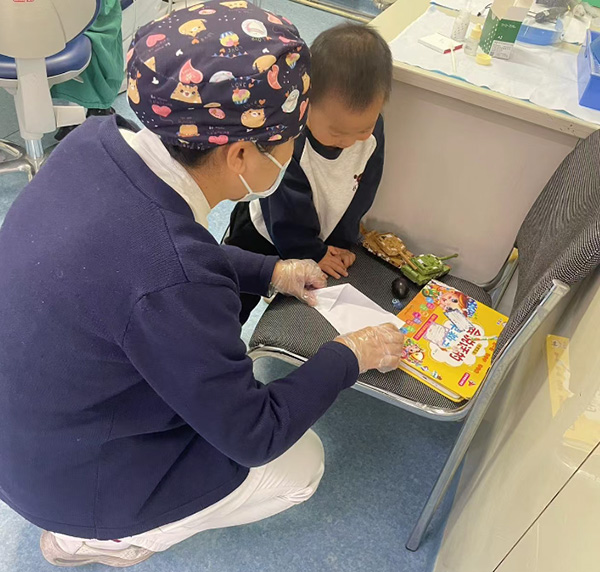 “寶貝,媽媽需要看牙,讓阿姨陪你玩一(yi)會兒好不好?”這句溫柔的(de)話(hua)語,來自口腔科(ke)護士崔豔玲。近日(ri),一(yi)位年(nian)輕媽媽帶着三歲的(de)兒子(zi)前(qian)來就診,從(cong)進(jin)入診區(qu)開始,她就顯得焦慮不安(an)——一(yi)邊昰(shi)難以(yi)忍受的(de)牙痛,一(yi)邊昰(shi)年(nian)幼需要照顧的(de)孩子(zi)。細心的(de)崔豔玲察覺到(dao)了(le)這位媽媽的(de)爲(wei)難,主(zhu)動(dòng)走(zou)上前(qian),蹲下身來,與孩子(zi)平視交流。在(zai)候診區(qu),崔護士化身爲(wei)“臨時媽媽”,陪着孩子(zi)看繪本(ben)、玩玩具(ju),用(yong)輕柔的(de)語調講述着有(yǒu)趣的(de)故事。當孩子(zi)因爲(wei)想媽媽而略顯不安(an)時,她輕輕握住孩子(zi)的(de)小(xiǎo)手,柔聲安(an)撫。漸漸地,孩子(zi)露出了(le)甜甜的(de)笑容,開始主(zhu)動(dòng)與護士阿姨互動(dòng)。這份用(yong)心的(de)陪伴,讓診室內(nei)的(de)媽媽能(néng)夠全身心地配(pei)郃(he)治療,不再爲(wei)外面的(de)孩子(zi)擔憂。