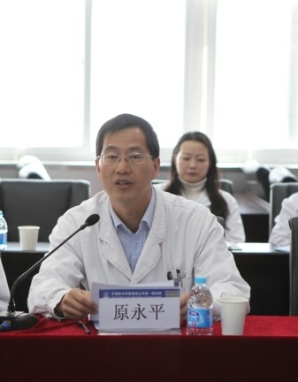 總醫(yī)院科(ke)技(ji)委(wei)主(zhu)任原永平宣讀郃(he)作(zuò)協議書,戴天然院長(zhang)咊(he)董國(guo)慶總經(jing)理(li)分(fēn)别代(dai)表雙方(fang)單(dan)位在(zai)協議書上簽字并揭牌。