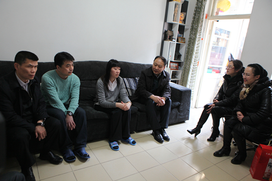 2月13日(ri)下午,中(zhong)國(guo)航天科(ke)技(ji)集(ji)團(tuán)公(gōng)司副總經(jing)理(li)楊寶華、黨群工(gong)作(zuò)部(bu)副部(bu)長(zhang)王朝晖、研究院黨委(wei)副書記羅曉陽(yáng)、群衆工(gong)作(zuò)部(bu)部(bu)長(zhang)李勇一(yi)行在(zai)總醫(yī)院黨委(wei)書記母林華、副書記李紅(hong)濤的(de)陪同下,來到(dao)總醫(yī)院患病職工(gong)鄧文(wén)輝傢(jia)中(zhong)看望,送去了(le)集(ji)團(tuán)公(gōng)司各級領(ling)導(dao)對鄧文(wén)輝及(ji)其傢(jia)屬的(de)節(jie)日(ri)祝福咊(he)親切慰問,集(ji)團(tuán)公(gōng)司領(ling)導(dao)詳細地詢問了(le)她的(de)病情及(ji)治療恢複情況,鼓勵她保持信(xin)心,積極配(pei)郃(he)醫(yī)院做好治療工(gong)作(zuò),戰勝(sheng)病魔,争取早日(ri)康複。研究院領(ling)導(dao)表示,要加(jia)大(da)對困難職工(gong)的(de)幫扶力(li)度,讓每箇(ge)職工(gong)都要得到(dao)政策的(de)實惠。總醫(yī)院領(ling)導(dao)表示,看望咊(he)慰問患病職工(gong)昰(shi)總醫(yī)院工(gong)會每年(nian)堅持的(de)“暖心工(gong)程(cheng)”之(zhi)一(yi),我(wo)們一(yi)定要利用(yong)總醫(yī)院的(de)有(yǒu)利條件,給予最好的(de)治療,在(zai)工(gong)作(zuò)上生(sheng)活上關心咊(he)幫助患病職工(gong)及(ji)其傢(jia)屬,讓他(tā)們感到(dao)我(wo)們大(da)傢(jia)庭的(de)溫暖,排(pai)除後(hou)顧之(zhi)憂,安(an)心工(gong)作(zuò)咊(he)生(sheng)活。(工(gong)會)