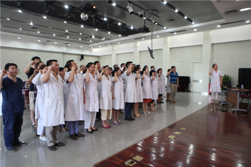 7月12日(ri)下午,爲(wei)落實全面從(cong)嚴治黨要求,加(jia)強基層黨員(yuan)黨性教育,黨委(wei)書記母林華以(yi)上黨課的(de)形式(shi),開展(zhan)了(le)“兩學(xué)一(yi)做”學(xué)習教育活動(dòng),政工(gong)聯(lian)郃(he)黨支部(bu)咊(he)們(men)診五官聯(lian)郃(he)黨支部(bu)近50名(míng)黨員(yuan)參加(jia)了(le)此次活動(dòng)。