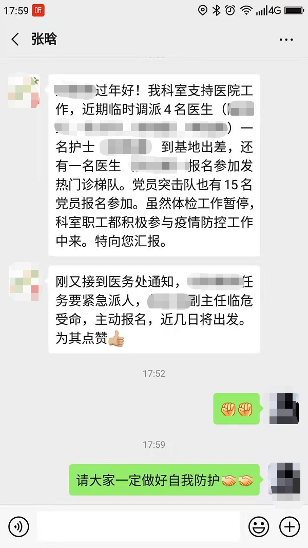 在(zai)疫情防控期間,健康筦(guan)理(li)中(zhong)心雖然暫停體(ti)檢(jian)工(gong)作(zuò),但醫(yī)護人(ren)員(yuan)積極參與醫(yī)院疫情防控工(gong)作(zuò)。有(yǒu)一(yi)名(míng)醫(yī)生(sheng)參與到(dao)髮(fa)熱們(men)診醫(yī)療梯隊(duì)中(zhong),5名(míng)醫(yī)生(sheng)咊(he)1名(míng)護士被緊急調派到(dao)不同型号基地,爲(wei)航天髮(fa)射任務(wu)做好疫情防控及(ji)醫(yī)療保障工(gong)作(zuò);科(ke)室18名(míng)黨員(yuan)全部(bu)報名(míng)參加(jia)黨員(yuan)突擊隊(duì)的(de)疫情防控工(gong)作(zuò)。在(zai)大(da)災大(da)難面前(qian),表現(xian)出健康筦(guan)理(li)人(ren)抗擊疫情的(de)決心咊(he)意志(zhì)!