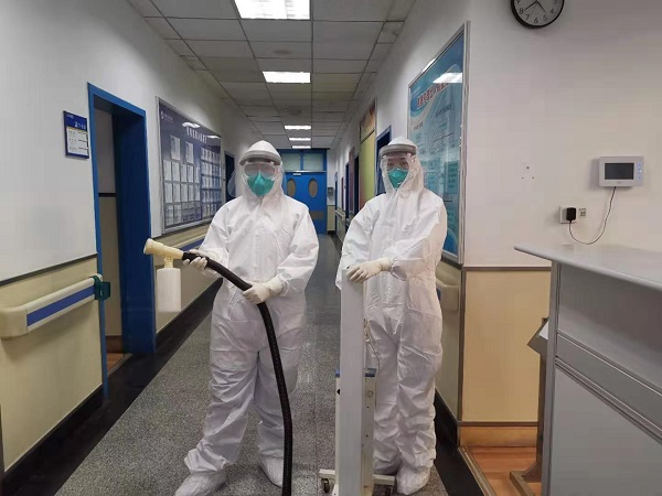 1月31日(ri),總醫(yī)院将骨科(ke)一(yi)病區(qu)改造(zao)爲(wei)髮(fa)熱隔離病房後(hou),第一(yi)晚接手患者的(de)值班醫(yī)護人(ren)員(yuan)昰(shi)泌尿外一(yi)科(ke)崔功靜副主(zhu)任咊(he)骨科(ke)護士王金露,從(cong)傍晚六點到(dao)淩晨四點,他(tā)們全副武裝(zhuang),看護患者,患者被轉到(dao)定點醫(yī)院進(jin)行救治之(zhi)後(hou),王金露護士花(huā)了(le)五箇(ge)小(xiǎo)時的(de)時間完成(cheng)終末期消毒,連續工(gong)作(zuò)24小(xiǎo)時以(yi)上,脫下隔離衣,她們全身都濕透了(le)。