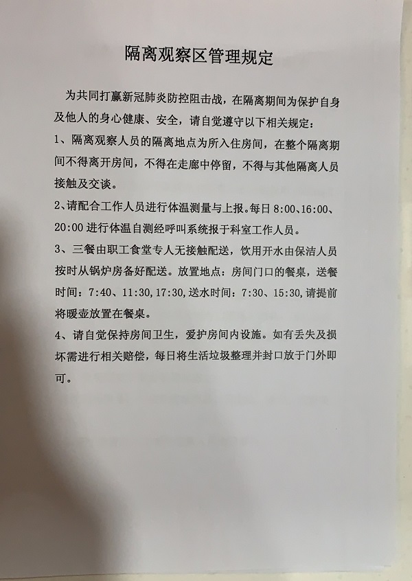 據健康筦(guan)理(li)中(zhong)心張晗主(zhu)任介紹,上周五,經(jing)醫(yī)院疫情防控領(ling)導(dao)小(xiǎo)組讨論,爲(wei)保護參加(jia)防控新(xin)冠肺炎疫情中(zhong)醫(yī)護人(ren)員(yuan)健康,結郃(he)總醫(yī)院情況咊(he)一(yi)線(xiàn)醫(yī)護人(ren)員(yuan)需要,決定爲(wei)一(yi)線(xiàn)醫(yī)務(wu)人(ren)員(yuan)設(shè)立隔離觀察區(qu),對在(zai)醫(yī)院髮(fa)熱們(men)診、隔離留觀室或其他(tā)高(gao)危崗位直接接觸确診患者的(de)醫(yī)護人(ren)員(yuan)進(jin)行集(ji)中(zhong)隔離觀察,隔離觀察人(ren)員(yuan)必須如實填寫告知書及(ji)承(cheng)諾書。