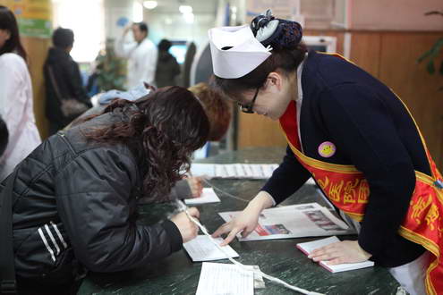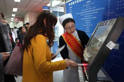 志(zhì)願者爲(wei)患者提供自助挂号服務(wu)