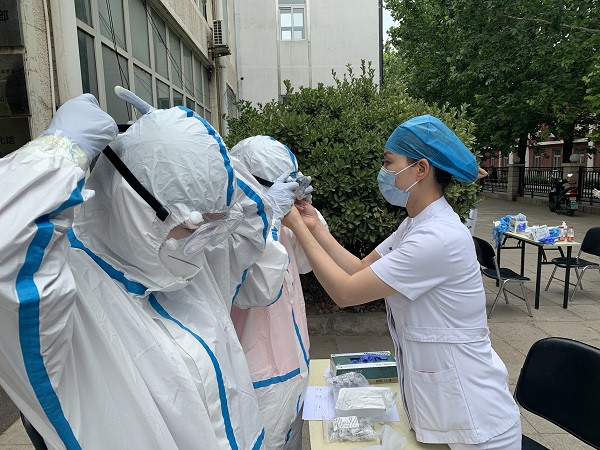 6月16日(ri),豐(feng)檯(tai)區(qu)衛健委(wei)髮(fa)布緊急通(tong)知,從(cong)轄區(qu)各相關醫(yī)療機(jī)構抽調醫(yī)務(wu)人(ren)員(yuan),組建(jian)核酸檢(jian)測(ce)采樣及(ji)血清(qing)抗體(ti)檢(jian)測(ce)應急隊(duì)伍。總醫(yī)院立刻行動(dòng),迅速(su)組建(jian)了(le)由50名(míng)護理(li)人(ren)員(yuan)組成(cheng)的(de)咽拭子(zi)采樣咊(he)抗體(ti)檢(jian)測(ce)隊(duì)伍,随時待命。
