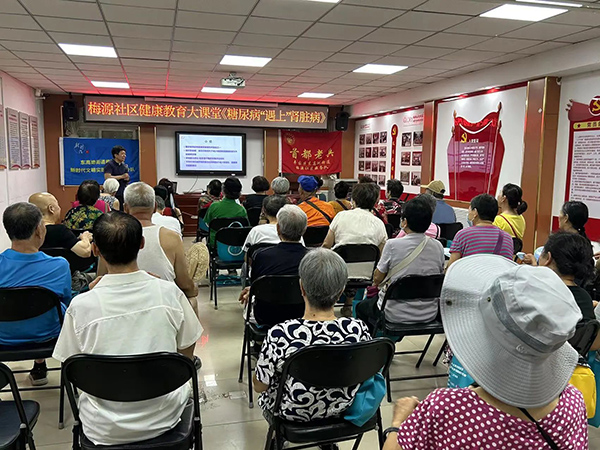 爲(wei)進(jin)一(yi)步提升大(da)衆對于(yu)慢性腎髒病的(de)早期篩查咊(he)主(zhu)動(dòng)預防的(de)意識,提高(gao)居民(mín)自我(wo)健康筦(guan)理(li)意識,北京航天總醫(yī)院腎內(nei)一(yi)科(ke)在(zai)東高(gao)地社(she))區(qu)衛生(sheng)服務(wu)中(zhong)心的(de)大(da)力(li)協助下,聯(lian)郃(he)豐(feng)檯(tai)區(qu)東高(gao)地梅源社(she))區(qu),開展(zhan)“健康教育大(da)課堂”主(zhu)題活動(dòng),由腎內(nei)一(yi)科(ke)張晶副主(zhu)任醫(yī)師以(yi)“糖尿病‘遇上’腎髒病”爲(wei)題進(jin)行科(ke)普宣教,宣傳(chuan)慢性腎髒病及(ji)糖尿病腎病的(de)防治知識,與廣(guang)大(da)居民(mín)攜手築起腎髒健康長(zhang)城(cheng)。