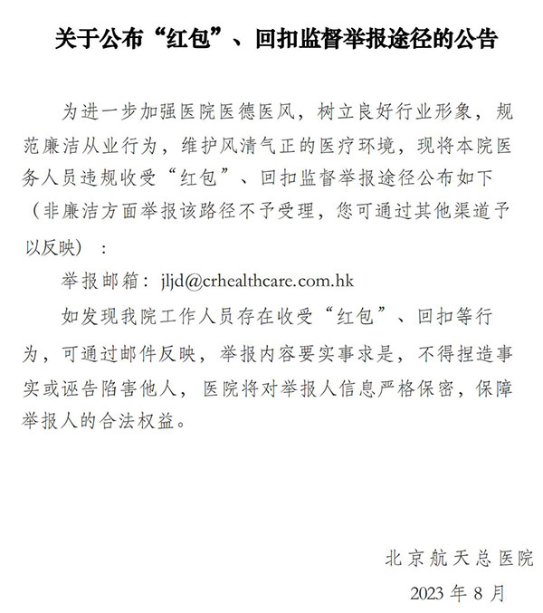 關于(yu)公(gōng)布“紅(hong)包”、回扣監督舉報途徑的(de)公(gōng)告
