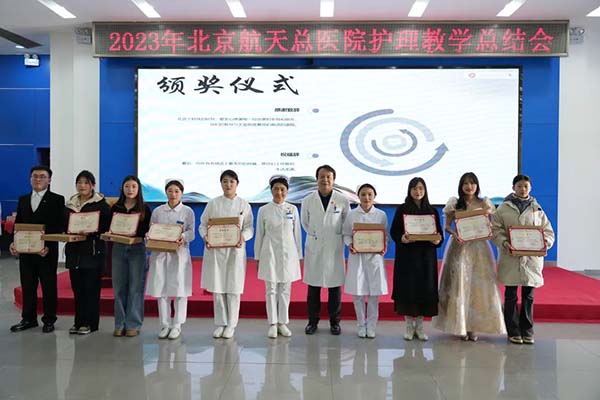 爲(wei)進(jin)一(yi)步規範護理(li)教學(xué)筦(guan)理(li),持續提升護理(li)教學(xué)水平,12月22日(ri)下午,北京航天總醫(yī)院護理(li)部(bu)在(zai)多(duo)功能(néng)廳組織召開了(le)2023年(nian)度護理(li)教學(xué)工(gong)作(zuò)總結會。甘豐(feng)副院長(zhang)、護理(li)部(bu)全體(ti)、臨牀(chuang)科(ke)室護士長(zhang)、帶教組長(zhang)及(ji)全體(ti)實習生(sheng)等(deng)共計(ji)180餘人(ren)參會,會議由護理(li)部(bu)教學(xué)負責人(ren)李薇主(zhu)持。