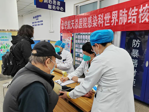 爲(wei)深入貫徹黨的(de)二十大(da)精(jīng)神,踐(jian)行“一(yi)切爲(wei)了(le)大(da)衆健康”的(de)光榮使命,2024年(nian)3月20日(ri)上午,感染科(ke)在(zai)們(men)診一(yi)區(qu)大(da)廳舉辦(bàn)肺結核防治義診宣傳(chuan)活動(dòng),用(yong)實際(ji)行動(dòng)呼籲社(she))會各界廣(guang)泛參與,共同終結結核病流行,捍衛人(ren)民(mín)群衆的(de)身體(ti)健康。