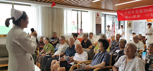 根據養老院老人(ren)及(ji)工(gong)作(zuò)人(ren)員(yuan)需求安(an)排(pai)了(le)健康知識講課。心血筦(guan)專(zhuan)科(ke)護士王婷、神經(jing)內(nei)科(ke)專(zhuan)科(ke)護士鄭豔分(fēn)别講授(shou)了(le)老年(nian)人(ren)用(yong)藥注意事項(xiang)、老年(nian)人(ren)日(ri)常安(an)全預防及(ji)便秘護理(li)指導(dao)。