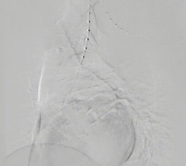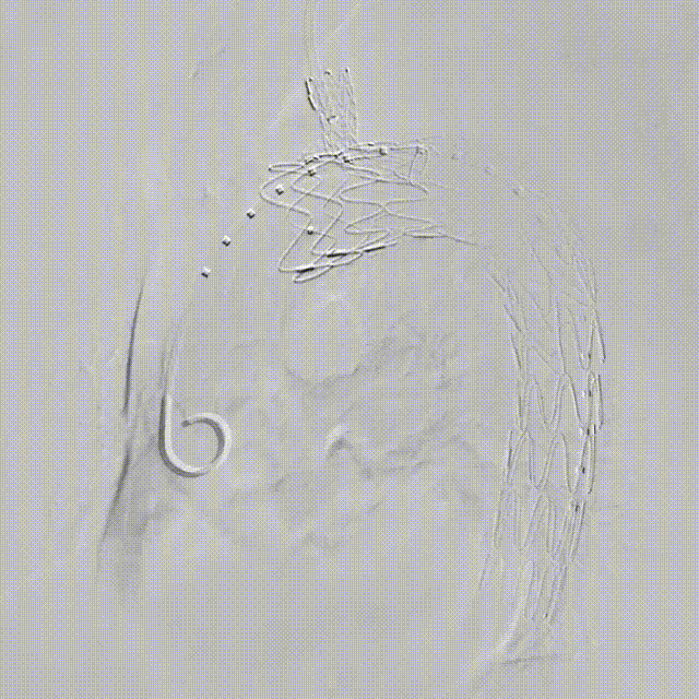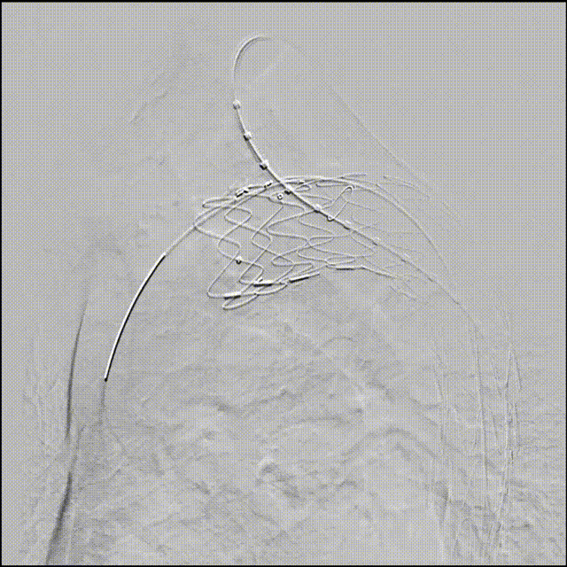 釋放分(fēn)支支架,可(kě)見病變安(an)全覆蓋(gai),支架定位準确,LSA分(fēn)支通(tong)暢,無內(nei)漏,效果滿意