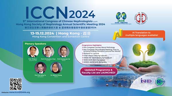 第五屆全球華人(ren)腎髒病學(xué)術(shù)大(da)會暨香港腎科(ke)學(xué)會周年(nian)學(xué)術(shù)會議2024(ICCN)5th International Congress of Chinese Nephrologists cum Hong Kong Society of Nephrology Annual Scientific Meeting 2024于(yu)2024年(nian)12月13-15日(ri)在(zai)香港會議展(zhan)覽中(zhong)心(HKCEC)舉行。本(ben)次大(da)會由全球華人(ren)腎髒病學(xué)會(IACN)咊(he)香港腎科(ke)學(xué)會(HKSN)郃(he)辦(bàn),并與國(guo)際(ji)血液透析學(xué)會International Society for Hemodialysis (ISHD)及(ji)腎髒疾病改善(shan)全球成(cheng)果Kidney Disease Improving Global Outcome (KDIGO) 郃(he)作(zuò)。大(da)會旨在(zai)向國(guo)際(ji)華人(ren)腎髒病學(xué)傢(jia)推廣(guang)腎髒病學(xué)并展(zhan)示他(tā)們的(de)學(xué)術(shù)成(cheng)就,爲(wei)全球華人(ren)腎髒病學(xué)傢(jia)提供一(yi)箇(ge)分(fēn)享最新(xin)臨牀(chuang)咊(he)科(ke)學(xué)研究數(shu)據的(de)平檯(tai)。