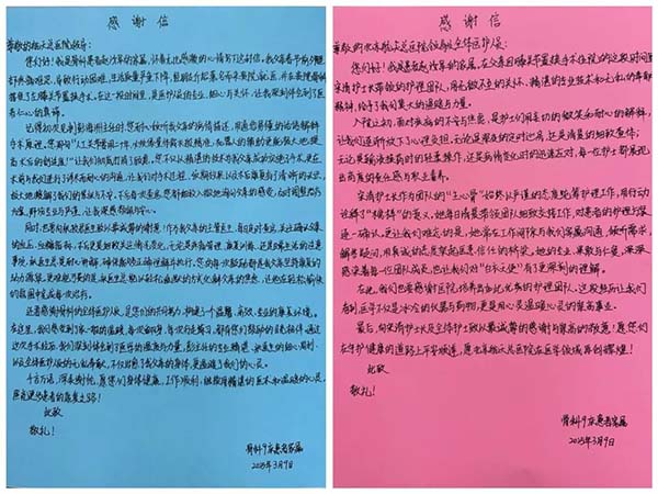 近日(ri),北京航天總醫(yī)院骨外科(ke)收到(dao)兩封情真意切的(de)感謝(xiè)信(xin),患者傢(jia)屬以(yi)真摯的(de)筆(bǐ)觸記錄了(le)父親趙先(xian)生(sheng)接受左膝關節(jie)置換手術(shù)并成(cheng)功康複的(de)經(jing)歷(li),字裏行間不僅飽含對醫(yī)護團(tuán)隊(duì)的(de)感激之(zhi)情,更生(sheng)動(dòng)展(zhan)現(xian)了(le)現(xian)代(dai)醫(yī)療技(ji)術(shù)與人(ren)文(wén)關懷相結郃(he)的(de)力(li)量。