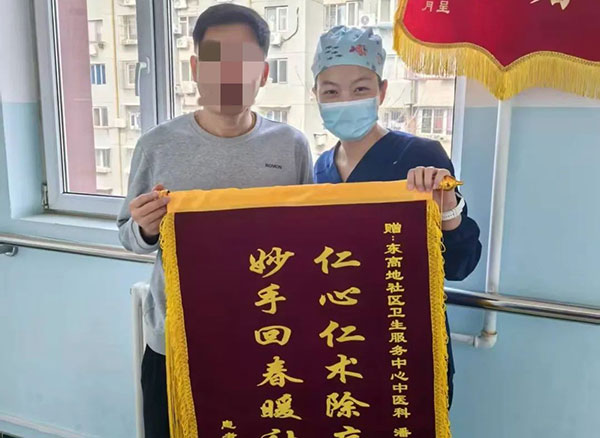 近日(ri),患者王阿姨的(de)傢(jia)屬将一(yi)面寫着“妙手回春暖社(she))區(qu),仁心仁術(shù)除病痛”的(de)錦旗送到(dao)了(le)我(wo)院東高(gao)地社(she))區(qu)衛生(sheng)服務(wu)中(zhong)心中(zhong)醫(yī)科(ke)潘婷婷醫(yī)生(sheng)手中(zhong),感謝(xiè)潘醫(yī)生(sheng)用(yong)精(jīng)湛的(de)醫(yī)術(shù)咊(he)貼心的(de)服務(wu),幫助她緩解了(le)更年(nian)期症狀,重(zhong)拾健康與快樂。