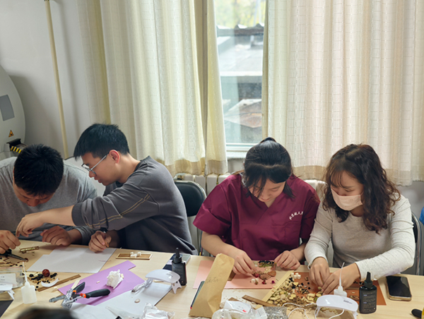 在(zai)認識中(zhong)草(cǎo)藥、了(le)解方(fang)劑組成(cheng)的(de)基礎上,活動(dòng)進(jin)入了(le)動(dòng)手實踐(jian)環節(jie)——以(yi)經(jing)典名(míng)方(fang)爲(wei)藍本(ben),親手製(zhi)作(zuò)中(zhong)草(cǎo)藥冰箱貼。大(da)傢(jia)細心挑選藥材(cai),巧妙設(shè)計(ji)構圖,将一(yi)味味中(zhong)草(cǎo)藥精(jīng)心粘貼于(yu)磁貼底闆上,創作(zuò)出兼具(ju)實用(yong)性與藝術(shù)性的(de)精(jīng)美作(zuò)品(pin)。